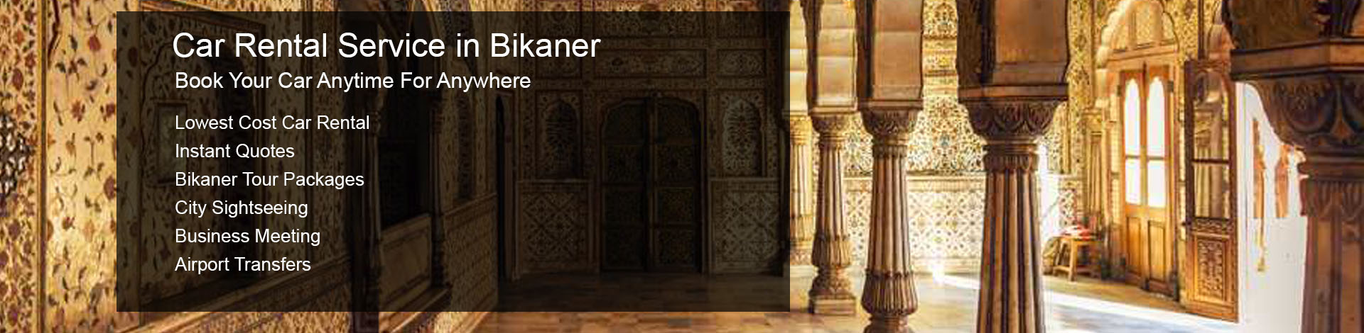 Delhi Rent Car provides a variety of cars in Bikaner based on your requirements and convenience to ensure that you will travel with us. We provide clean, comfortable and affordable taxis in addition to luxurious and stylish taxis. At the most reasonable prices, we provide the best taxi services in Bikaner. We also provide taxi services throughout Rajasthan.